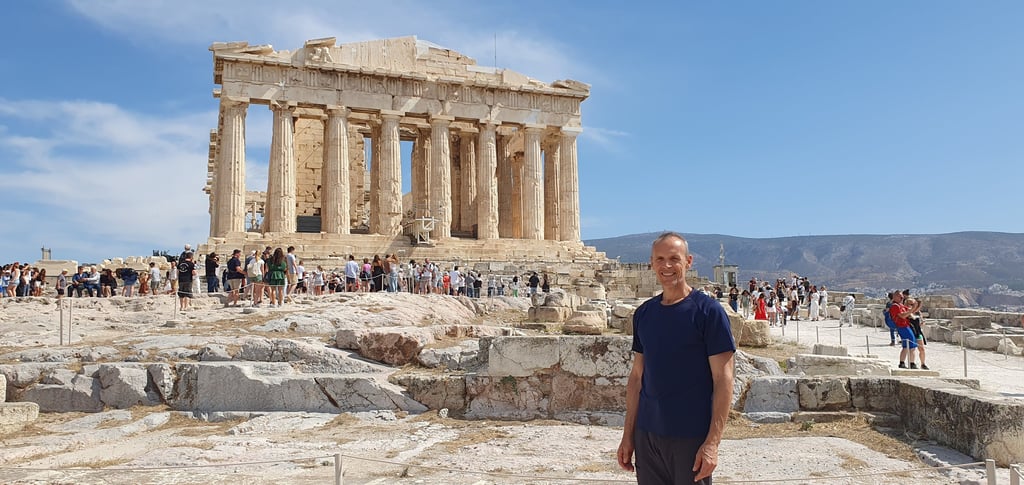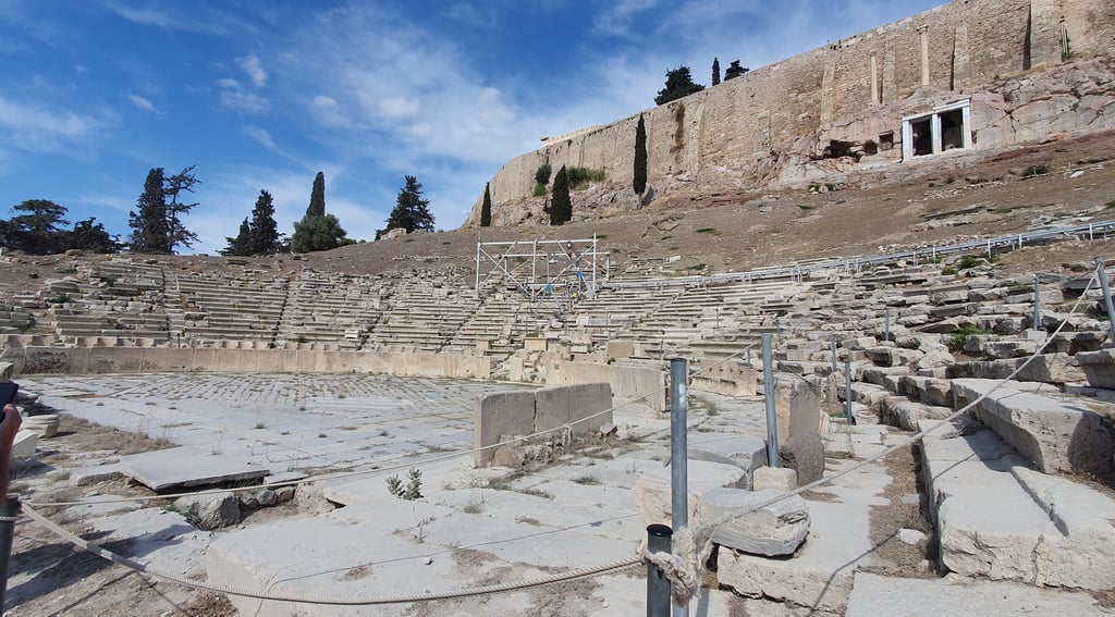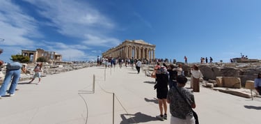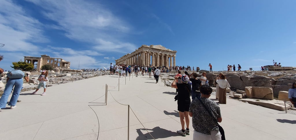 To visit the Acropolis, you need to buy a ticket, and if you want more, you can book a guided tour. I downloaded an app with a guided tour, which helped us navigate. Admission to the Acropolis is free on some national holidays and certain other days, including the last weekend in September, which was when we visited. We still needed a ticket and were assigned an entrance time, but we didn't pay anything. Because of the free entrance, the number of visitors was enormous. We had to wait about 45 minutes to be allowed to enter.
