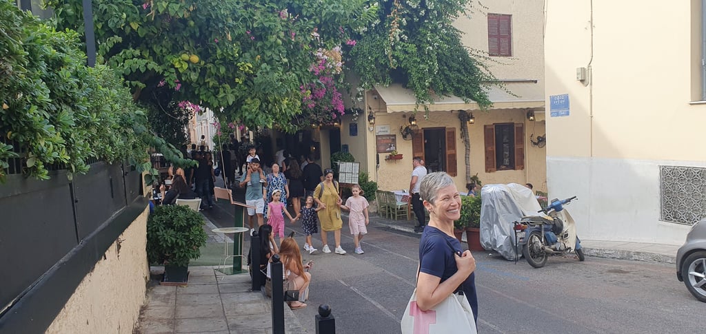 We got off the bus two stops before the end of the tour and explored that area on foot. The most picturesque part of the city was Plaka, where we walked the streets, had dinner, and then continued to the metro station to head home. It was already dark when we arrived.