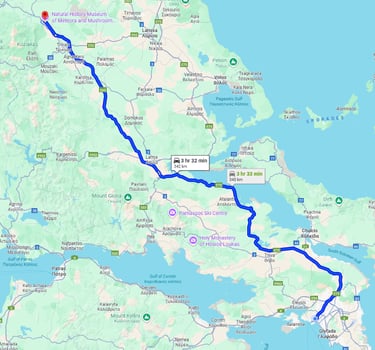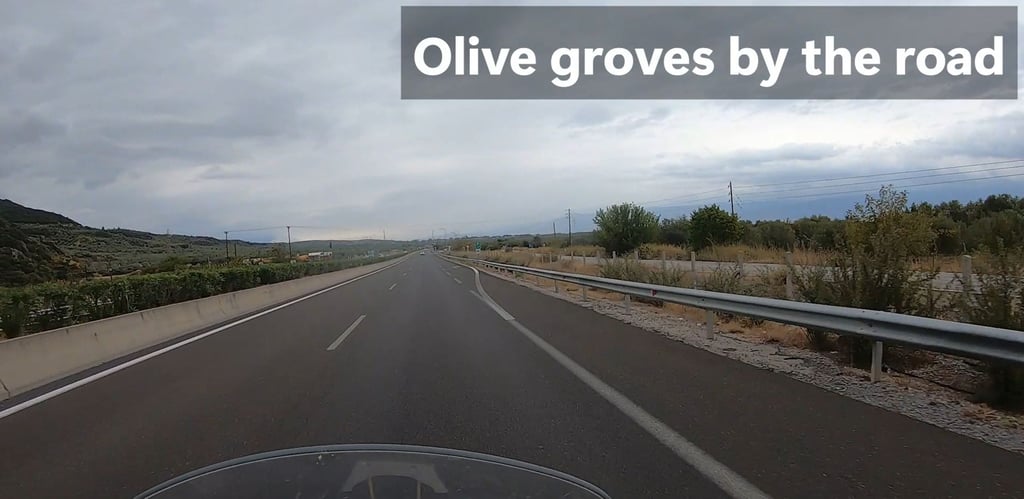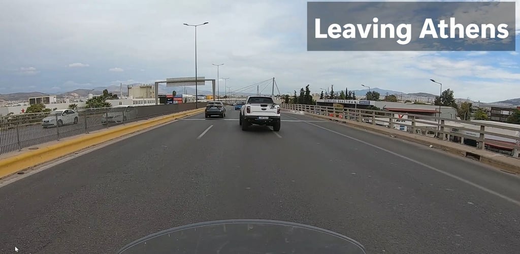 Departure from Athens was very quick, partly due to the light traffic on Sunday morning and partly because our apartment was close to the Athens ring road. The weather in Athens was partly cloudy, but the forecast for the rest of the trip was clouds and some rain.
