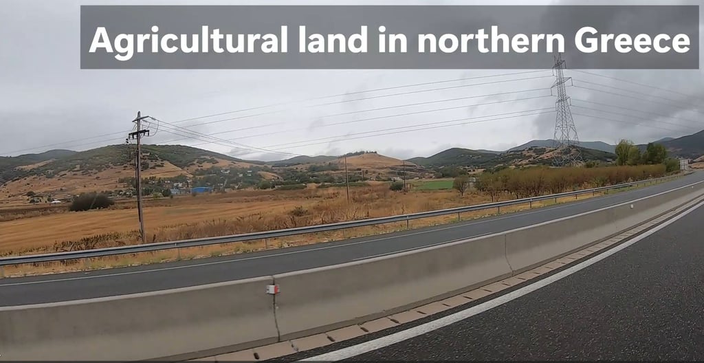 Rain accompanied us intermittently throughout the rest of today's journey. The countryside is typically Greek, with hills and mountains separated by valleys and plains.