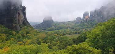 We arrived in Kalampaka in the afternoon. It was raining when we arrived. Kalampaka is a small town beneath the impressive Meteora rock formations. September is peak season, so there were many tourists from all over the world.